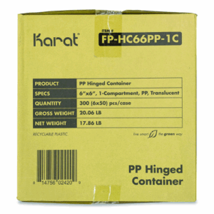 Karat Polypropylene Plastic Hinged Container, 6 x 6 x 3.3, Clear, Plastic, 50/Pack, 6 Packs/Carton (FPHC66PP1C)