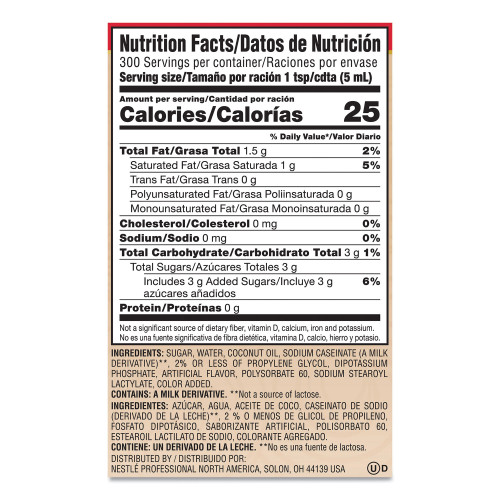 Non-dairy coffee creamer is now available in a convenient, easy-to-use pump dispenser that eliminates mess. One pump gives you the same amount of delicious Coffee-mate Liquid Coffee Creamer as one small tub. Pump is non-removable once installed for food safety. 300 liquid creamer servings per bottle. Lactose-free, Kosher dairy, cholesterol-free and shelf-stable. Flavor: Sweetened Original; Product Packaging: Pump Bottle; Premeasured: No; Volume Capacity: 1.5 L.