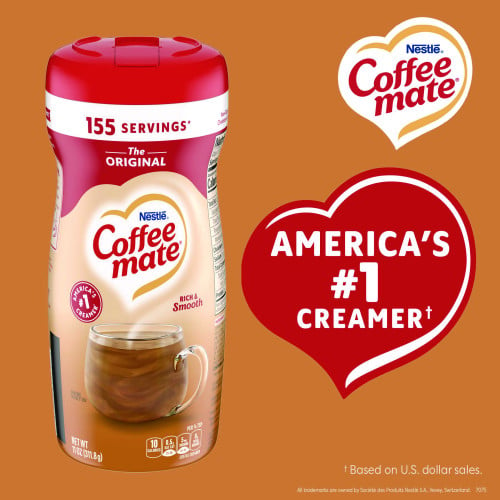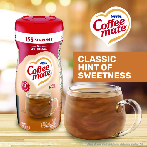 Nestle Coffee mate Powdered Coffee Creamer is an ideal way to create a delicious cup of coffee perfection. Smooth and rich, this creamer delivers classic flavor that transforms every drinking experience. Coffee mate creamer is lactose free, gluten free and non dairy. Powder makes it easy to add the right amount of flavor every time, letting you easily transform your coffee into warm deliciousness. Whether it’s your morning cup or an afternoon pick-me-up, this coffee creamer wakes up your coffee. Store Coffee mate powdered creamer in a cool, dry place. Unique Flip-Top Design–Allows for an easy pour. Flavor: Original; Product Packaging: Canister; Premeasured: No; Capacity (Weight): 11 oz.